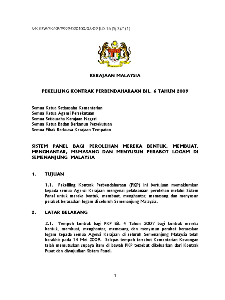 Kementerian Kewangan Malaysia Pekeliling Kontrak Perbendaharaan Bil 2 Tahun 2014 Pelanjutan Tempoh Kontrak Pusat Sistem Panel Pdf Free Download