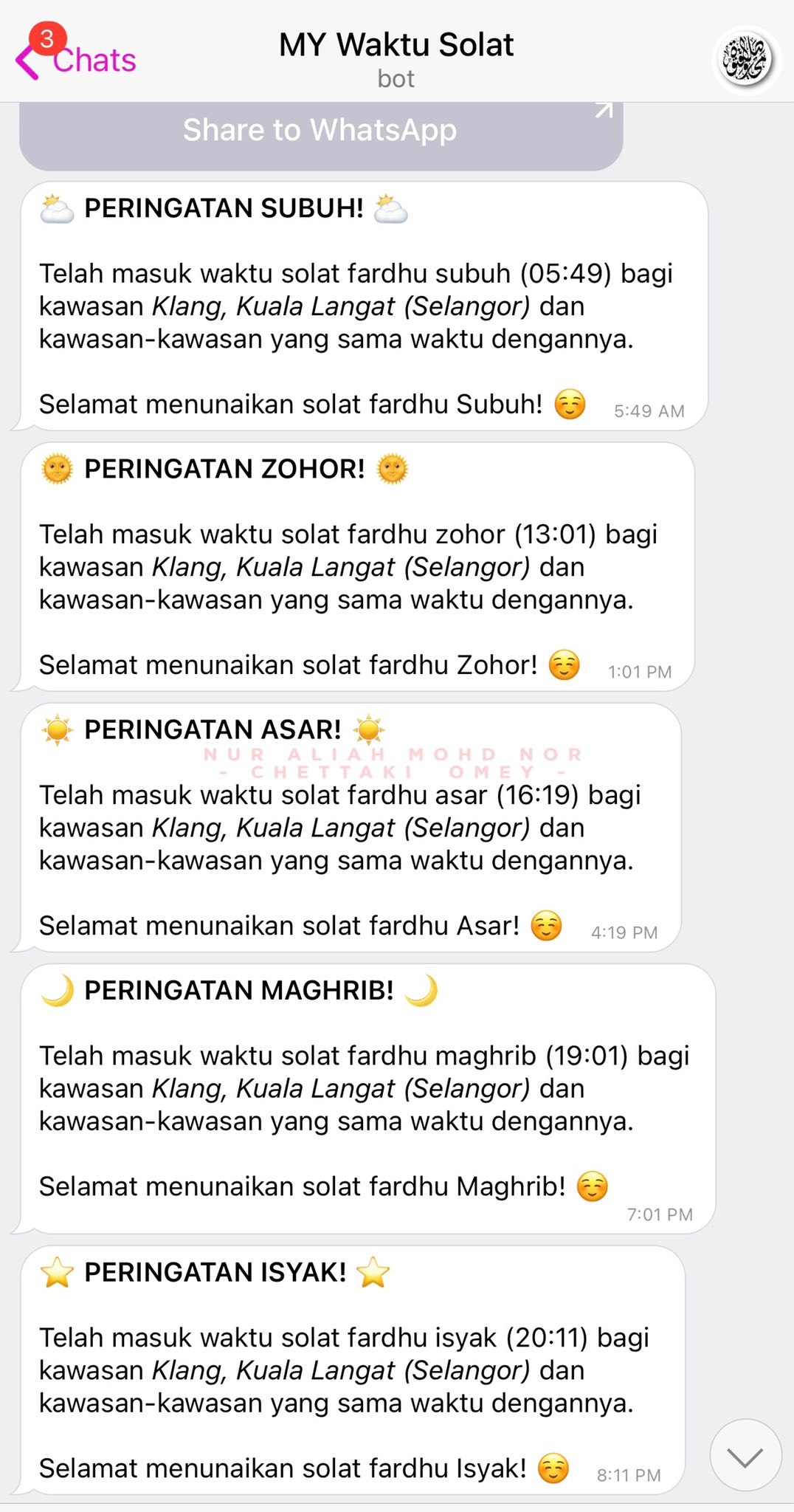 Nur Aliah Mohd Nor On Twitter No1 Waktu Solat Mywaktusolatbot Setiap Kali Masuk Waktu Solat Dia Akan Bagi Reminder Dan Akan Keluar Dekat Notification Hp Kita Bagi Yang Set On Notification